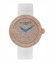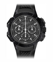 Epic X Chrono 44mm Tri-Compax refines the bold identity of the Epic X collection in a 44mm case. Retaining the signature X-shaped design running through the case and dial, this high-performance chronograph combines functionality with an elevated sense of luxury. Crafted from lightweight yet durable titanium and ceramic, the case ensures a strong presence on the wrist while maintaining comfort. The semi-transparent blue dial partially showcases the self-winding JCAA12 movement, a tri-compax chronograph with a column wheel and horizontal clutch for precision timing. The blue rubber strap enhances the sporty appeal while ensuring a secure and comfortable fit. Crown and pusher guards seamlessly integrate into the case’s architecture, enhancing both symmetry and protection. With water resistance up to 200 metres and a blend of sport and refinement, the Epic X Chrono 44MM is an exceptional choice for those who appreciate Jacob & Co.’s avant-garde design and mechanical mastery in a more compact, unisex size.